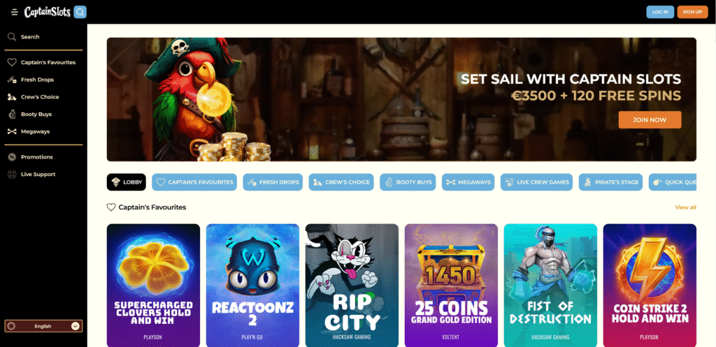 Go to the "Deposit" section of your personal space. Captain Slots offers several secure payment methods: bank cards, electronic wallets or instant transfers. The minimum amount varies according to the method chosen, generally set at €10.