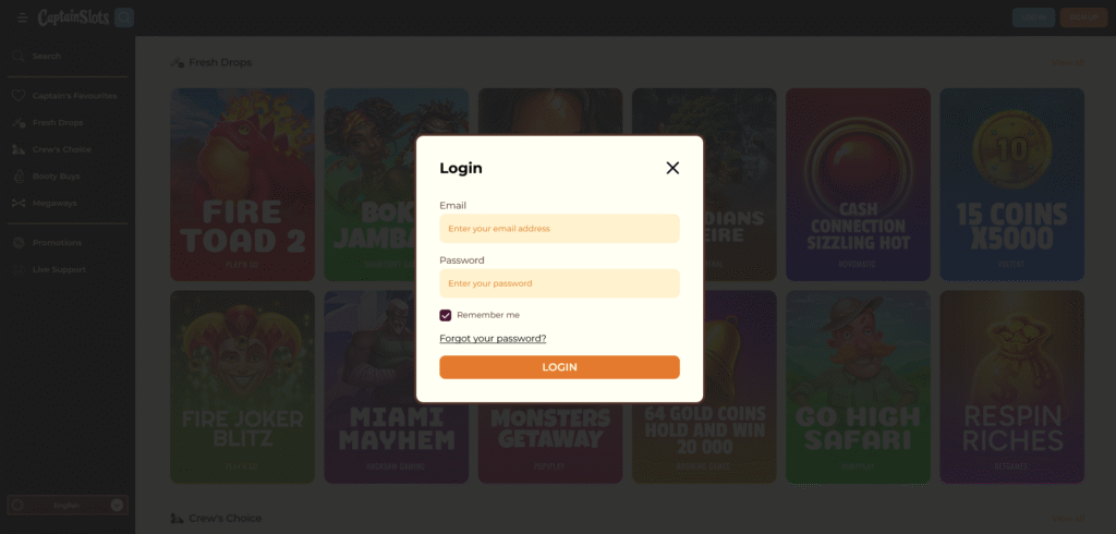 Go to the Captain Slots homepage and click on the register button. The form only requires your essential information: valid email address, secure password, and some basic personal data for identity verification.
