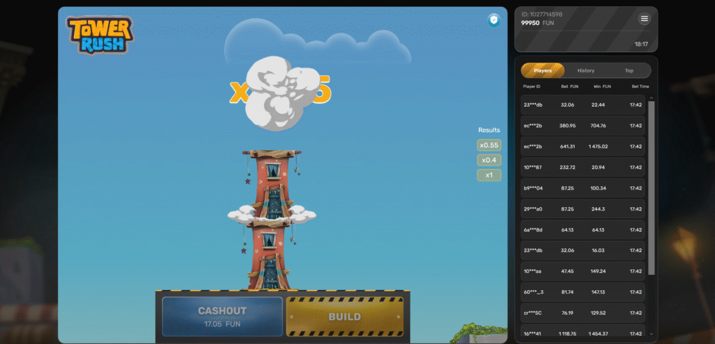 Tower Rush fully deserves its reputation as a revolutionary game in the world of casino mini-games. Galaxsys' innovation radically transforms the traditional user experience of crash games.